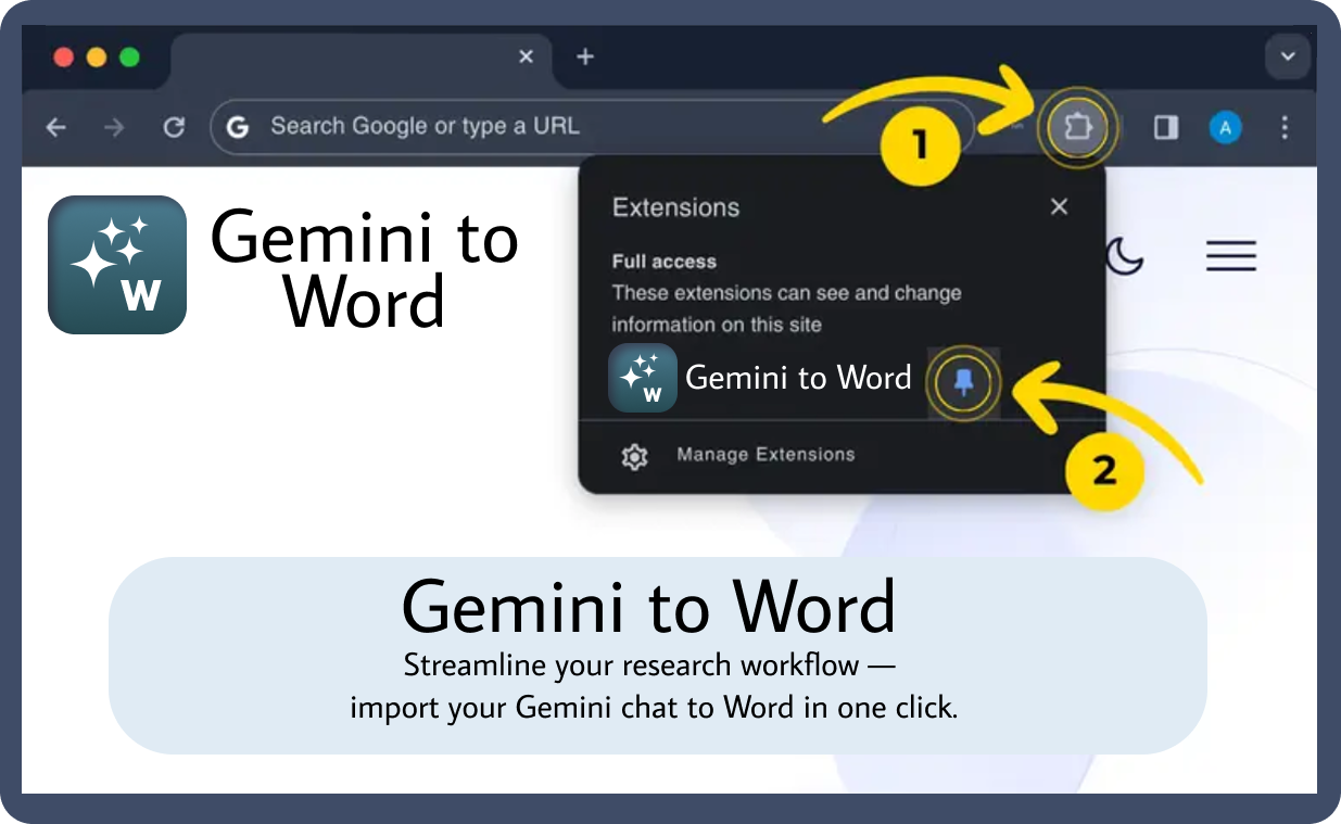 Gemini to Word helps you export Gemini chats to Word documents instantly.